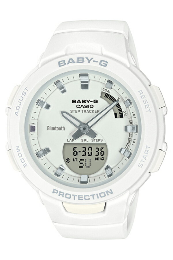 型番 BSA-B100-7AJF ケース材質:合成樹脂サイズ約:縦50×横42mm重さ約:35gベルト材質:ウレタンカラー:ホワイトベルト腕周り最少:13cmベルト腕周り最大:18cmムーブメントクォーツ(電池式)機能風防素材:ミネラルガラス留め金 バックル(尾錠)耐衝撃構造 10気圧防水機能モバイルリンク機能・ステップトラッカー・タイマーメニュー作成、転送・ホームタイムとワールドタイムの時刻入替・ストップウオッチ・時刻アラーム設定・操作音ON/OFF切替・携帯電話探索・自動時刻修正・ワールドタイム約300都市針退避機能(針が液晶表示と重なって見づらいときは、針を液晶表示の上から一時的に退避させることができます)歩数計測機能・歩数表示範囲:0~999,999歩・ 目標達成率表示GOALマーク表示付き、目標歩数設定範囲:1,000~50,000歩、1,000歩単位)・ ステップリマインダー機能(一定時間の間に歩行が少ないと表示と電子音でお知らせ、ON/OFF 切替付き)・歩数グラフ(1時間毎の歩数を11時間分6段階でレベル表示)・ステップインジケーター表示・ パワーセービング機能(一定時間動きが無いと自動的にセンサーをスリープ状態にし節電)デュアルタイム(ホームタイムとの時刻入替機能付き)ストップウオッチ(1/100秒(1時間未満)/1秒(1時間以上)、24時間計、ラップ/スプリット付き、 計測データを最大200本メモリー(計測月・日、ラップ/スプリットタイム)、ターゲットタイム報知機能付き、ターゲット報知(目標タイム)を10本までセット可能(セット単位:1秒、最大セット3時間59分59秒))タイマー:最大5つの時間設定が可能なインターバル計測用のタイマー(セット単位:1秒、最大セット:60分、1秒単位で計測、オートリピート、オートスタート)時刻アラーム5本・時報フルオートカレンダー操作音ON/OFF切替機能ダブルLEDライト:文字板用LEDライト(オートライト、スーパーイルミネーター、残照機能、残照時間切替(1.5秒/3秒)付き)、LCD 部用LEDバックライト(オートライト、スーパーイルミネーター、残照機能、残照時間切替(1.5秒/ 3秒)付き)※ スマートフォンと連携しない場合は通常のクオーツ精度(平均月差±15秒)で動作します。