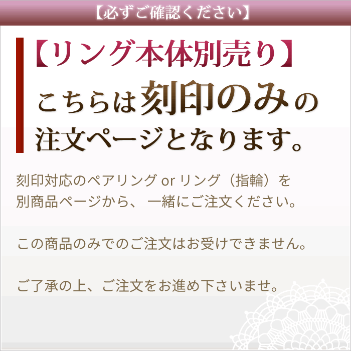◆ご注文の方法(手順)「リングに刻印」と刻印可能な商品(リング)を買い物かごに一緒に入れて決済してください。