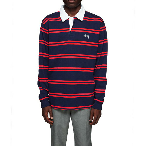 ステューシー STUSSY ラガーシャツ ボーダー 長袖 デズモンド ストライプ DESMOND STRIPE L/SL RUGBY ネイビー サイズ M , L , XL 【1140097】【新品】 新品 mellow USA企画 カットソー ストリート 【あす楽対応】【古着 mellow楽天市場店】
