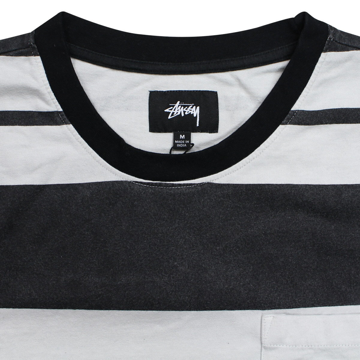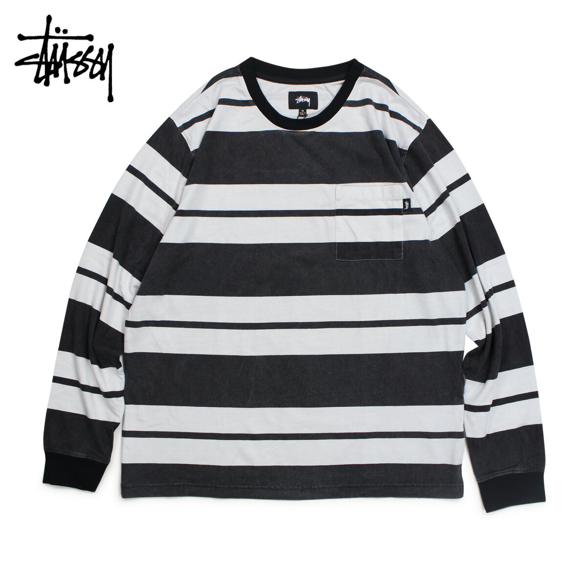 STUSSY FRANKLIN STRIPE LS CREW ステューシー Tシャツ メンズ 長袖 ロンT カットソー クルーネック ブラック 黒 1140130 [6/18 新入荷]